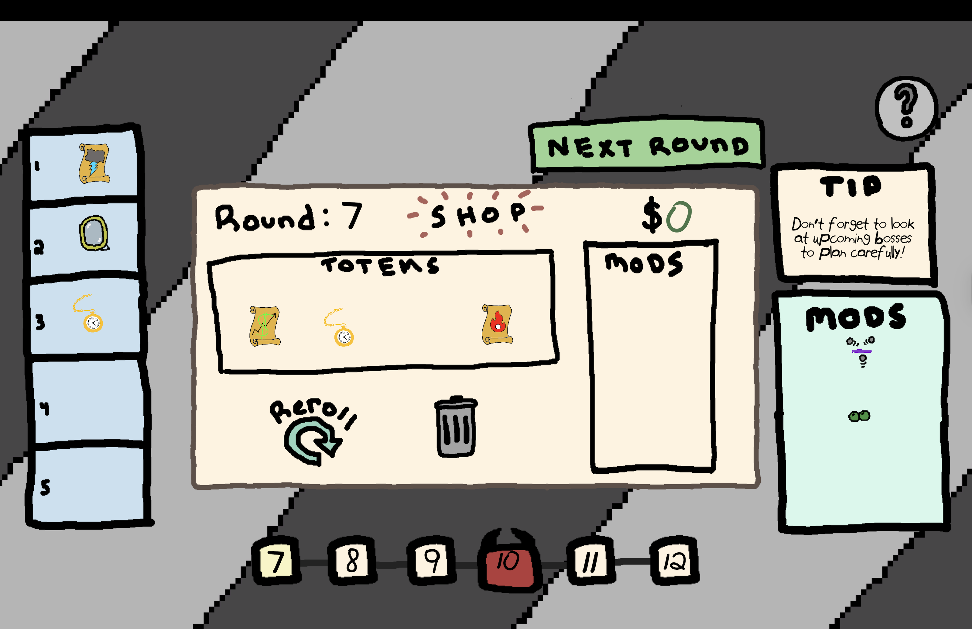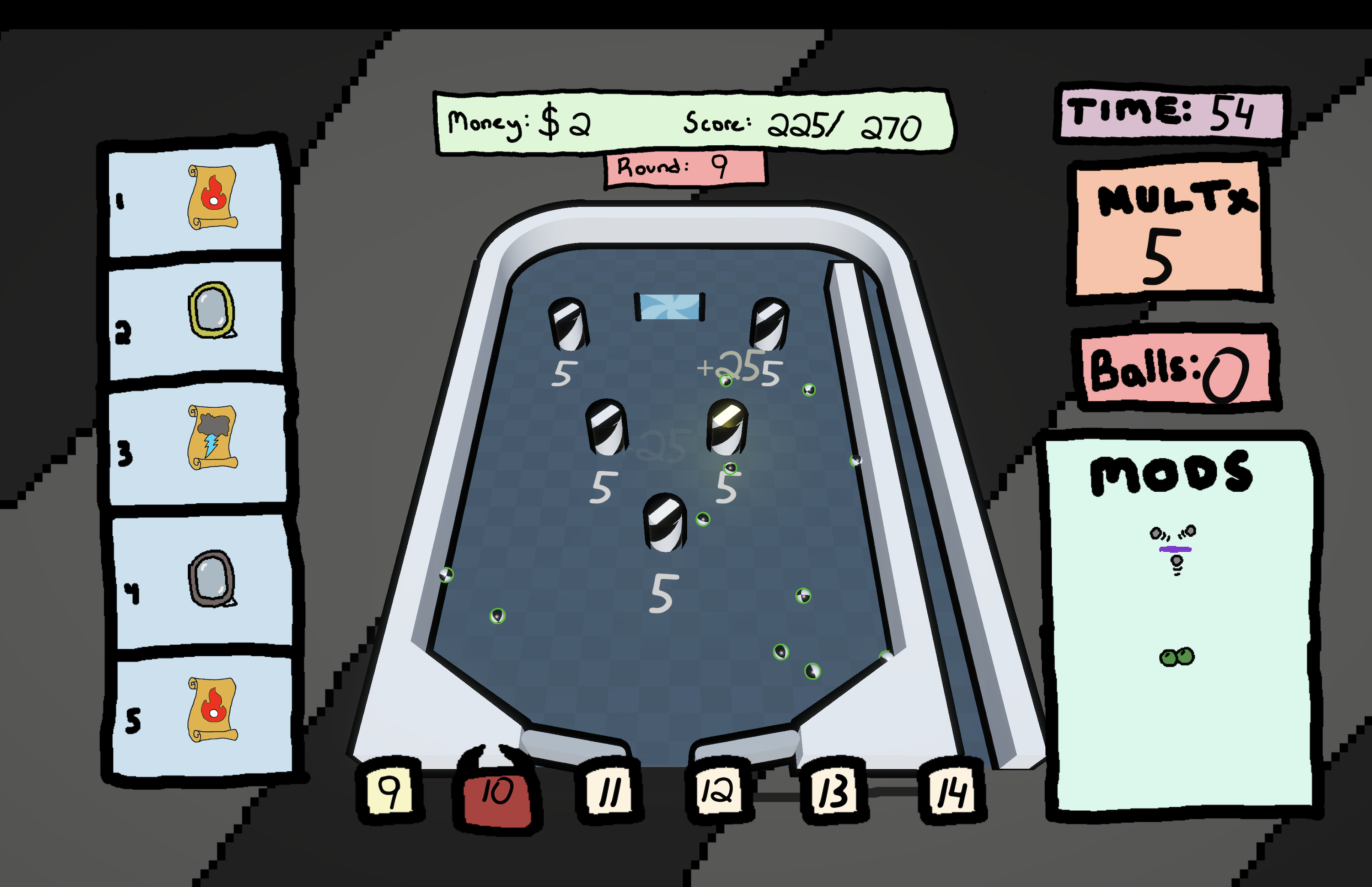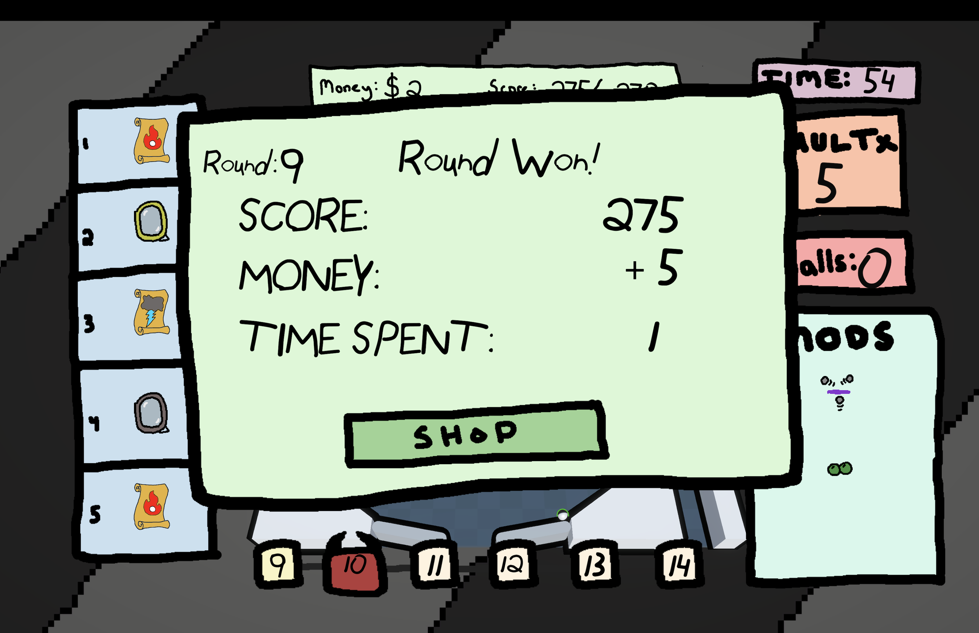 To assist you, a shop will appear after each round, where you can spend your earned money on totems and modifications to the pinball machine!